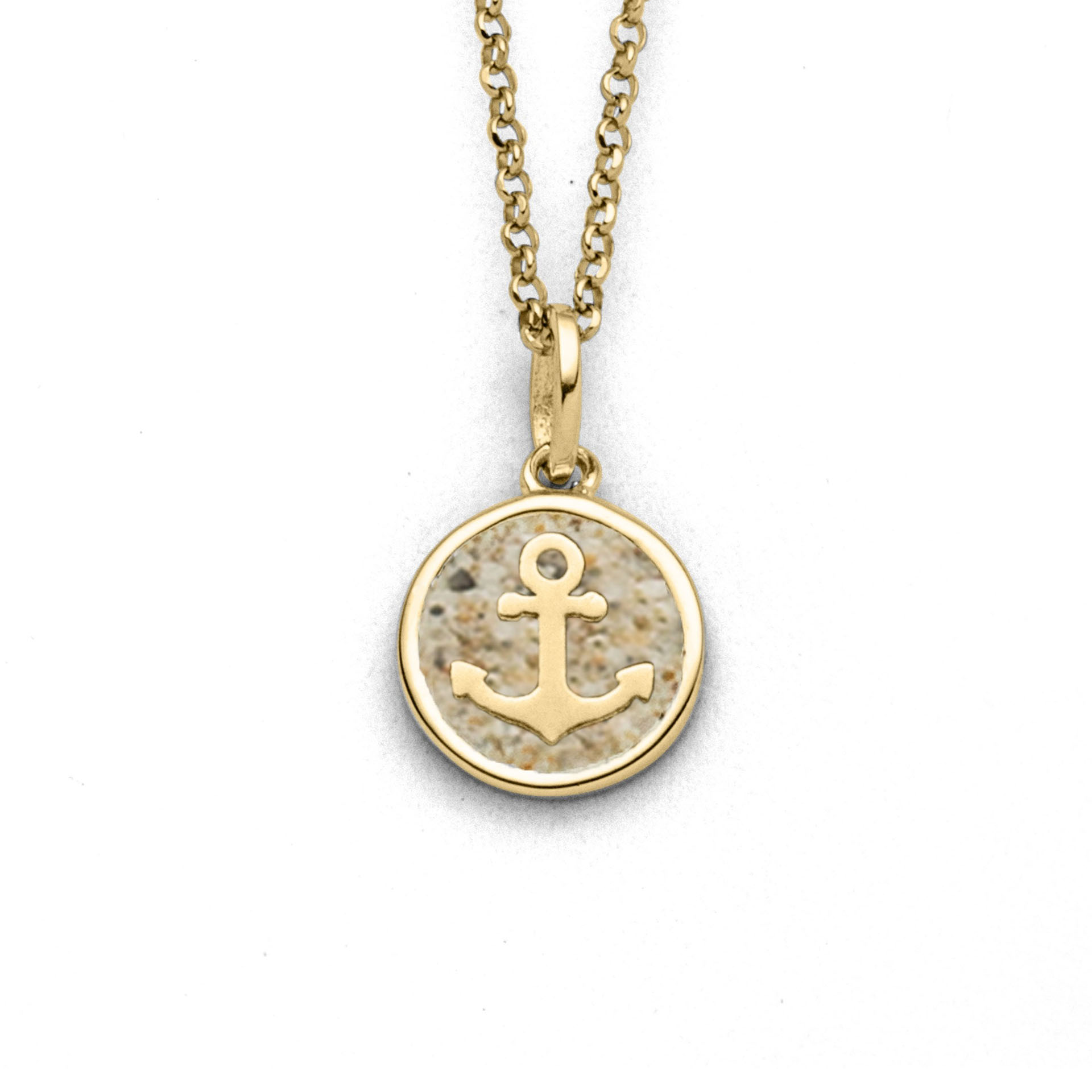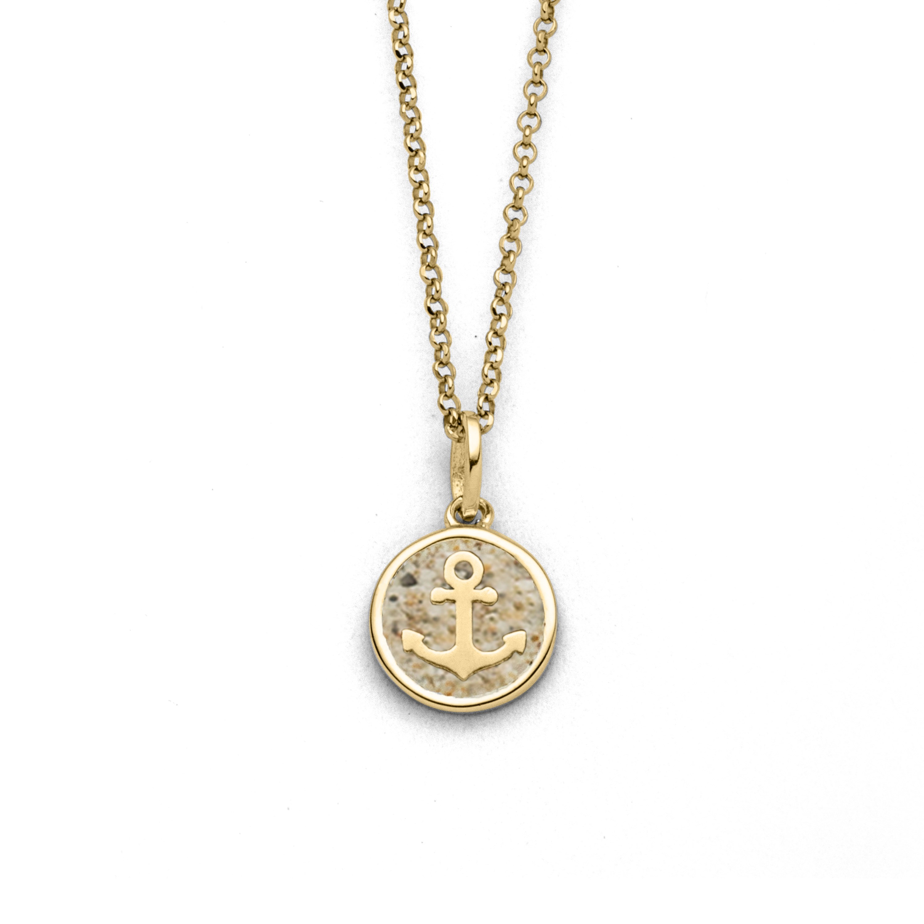 Feine Erbskette rhodiniert mit einer runden, in Strandsand gebetteten Muschel, aus poliertem und rhodiniertem 925er Sterling-Silber, ca. 42 cm lang. Durch die Rhodinierung ist das Schmuckstück anlaufgeschützt.