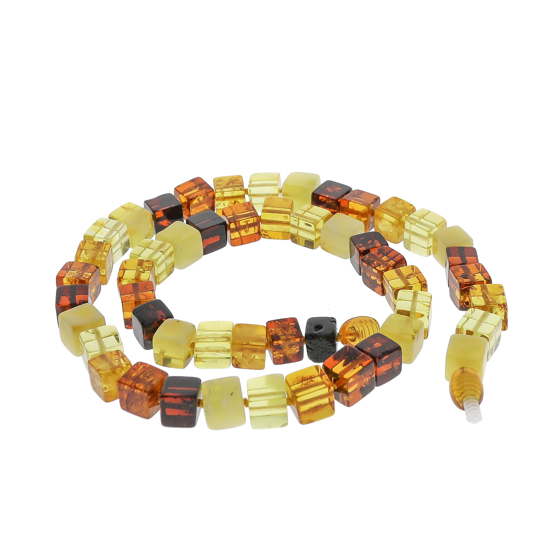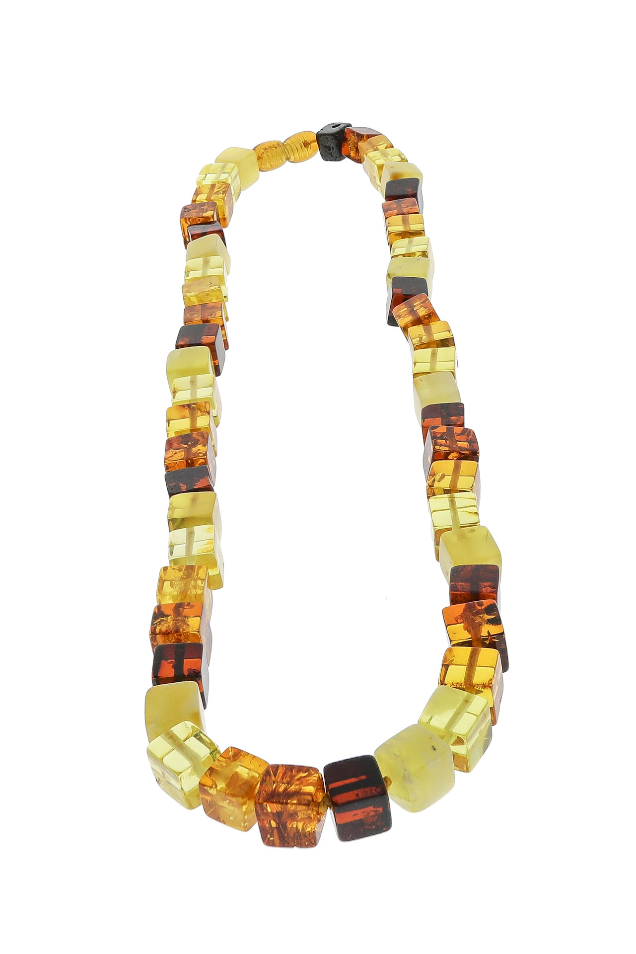 Handgefertigte Halskette, bei der die Bernsteinstücke in eine quadratische Form gebracht werden, einzigartige farbige Halskette
