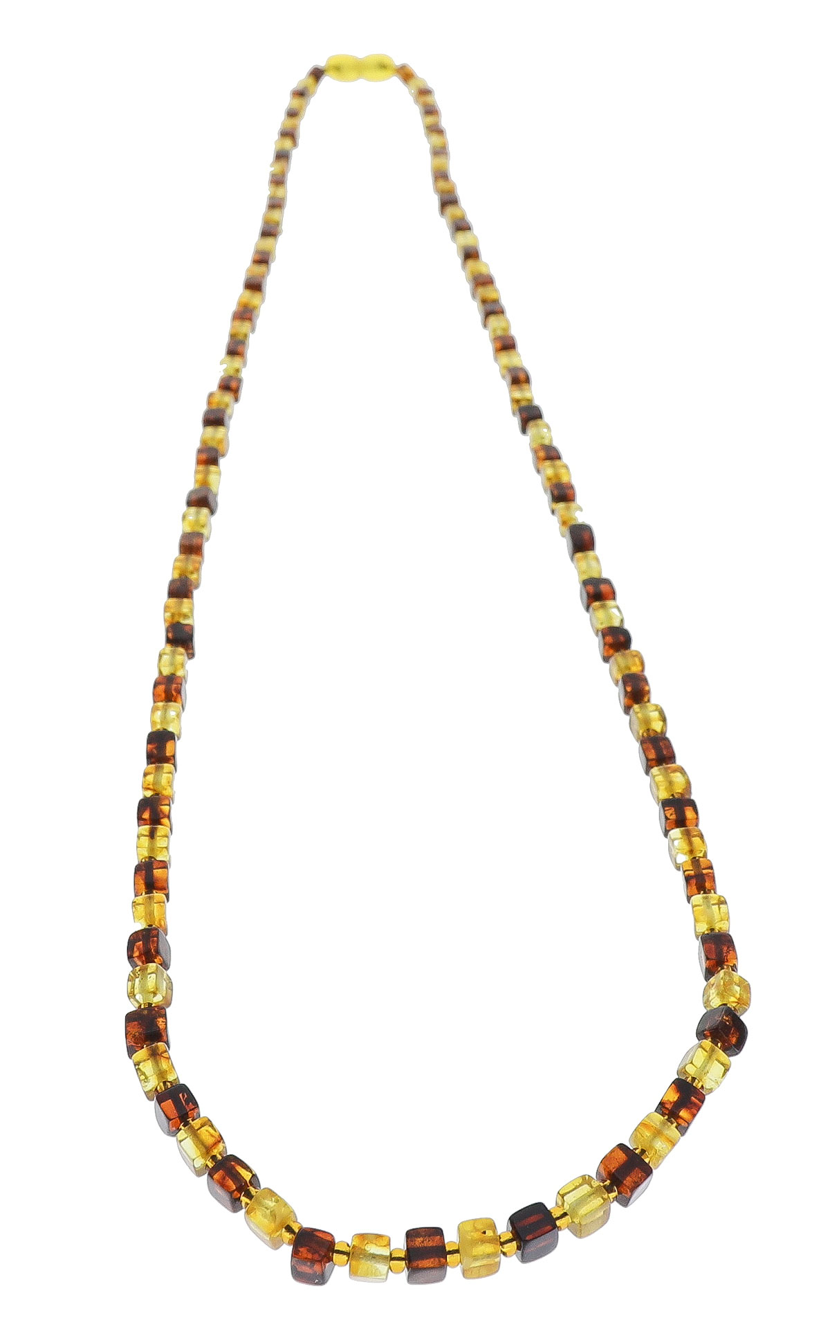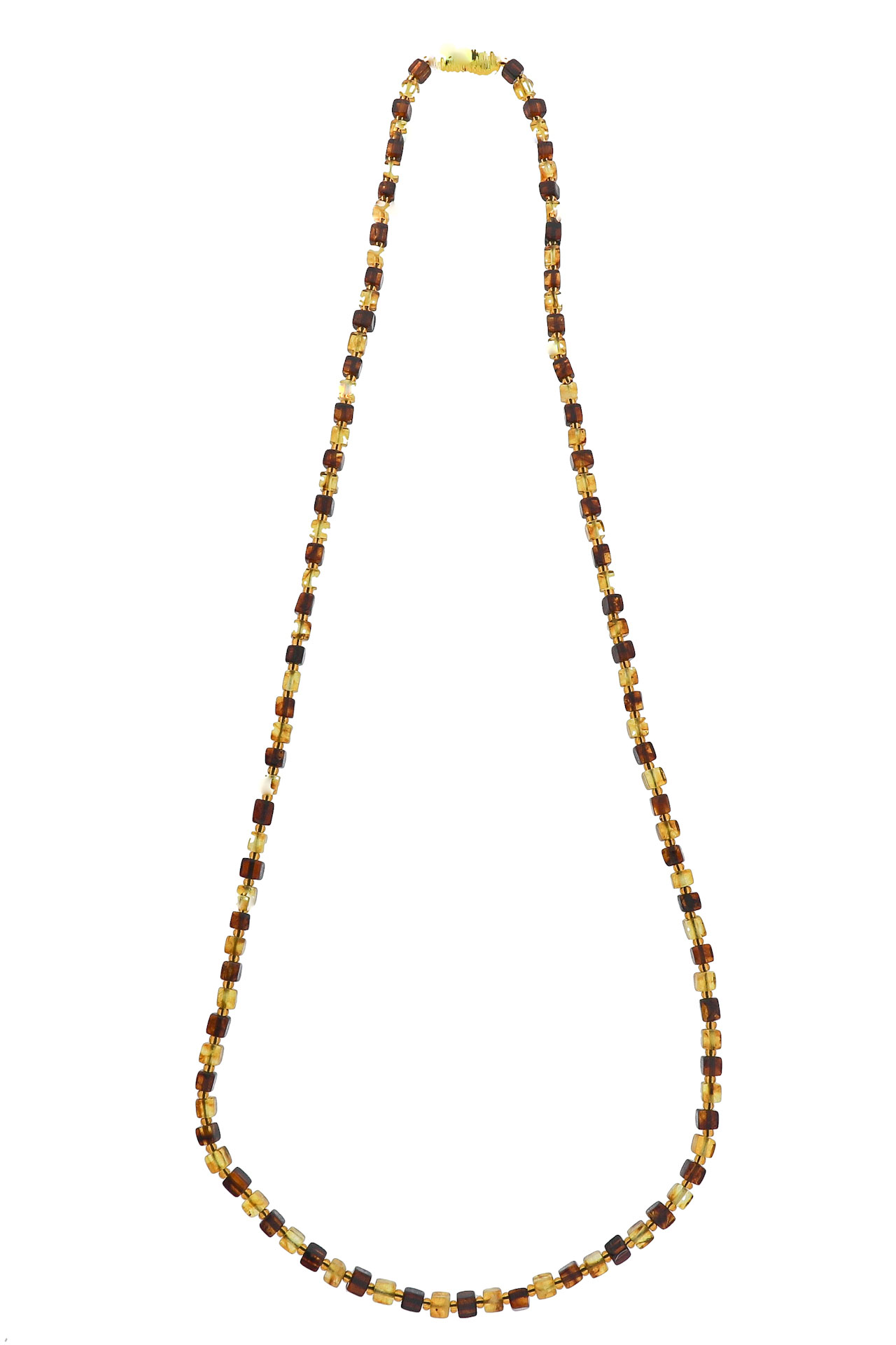 Die Kette ist handgefertigt aus feinsten polierten Bernsteinstücken, die wie kleine Würfel geformt sind