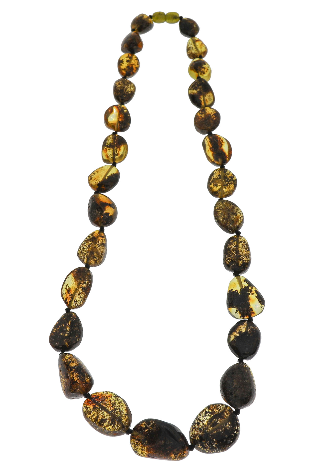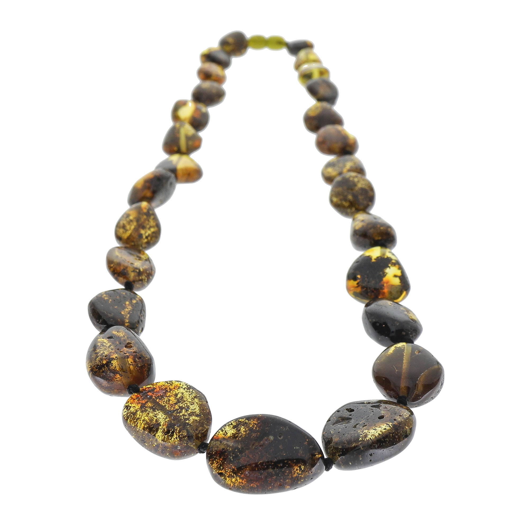 Die Kette ist handgefertigt aus den feinsten polierten Bernsteinstücken, jedes mit einer einzigartigen Textur