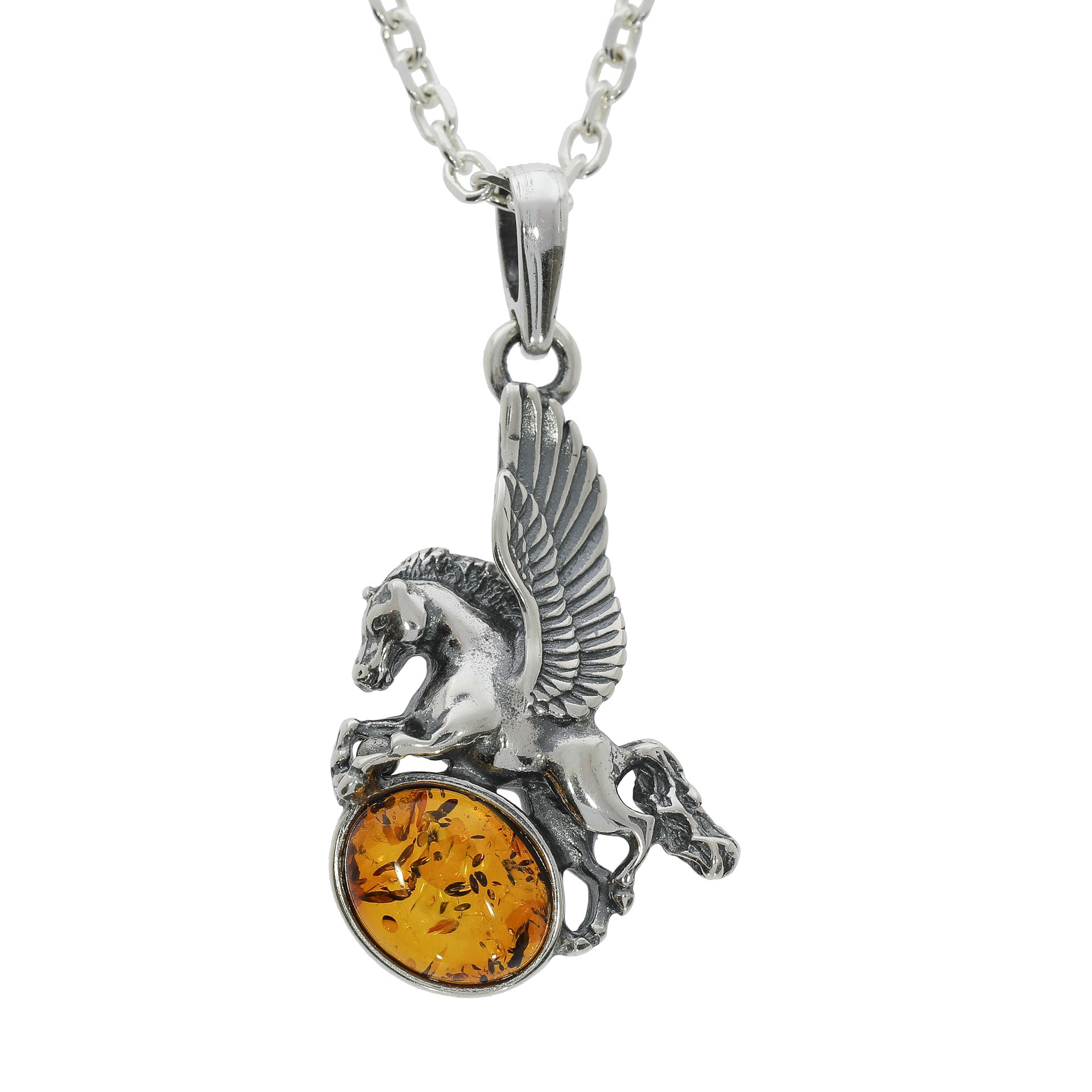 Pegasus Flügelpferd Anhänger aus 925er Sterlingsilber mit Nordsee Bernstein