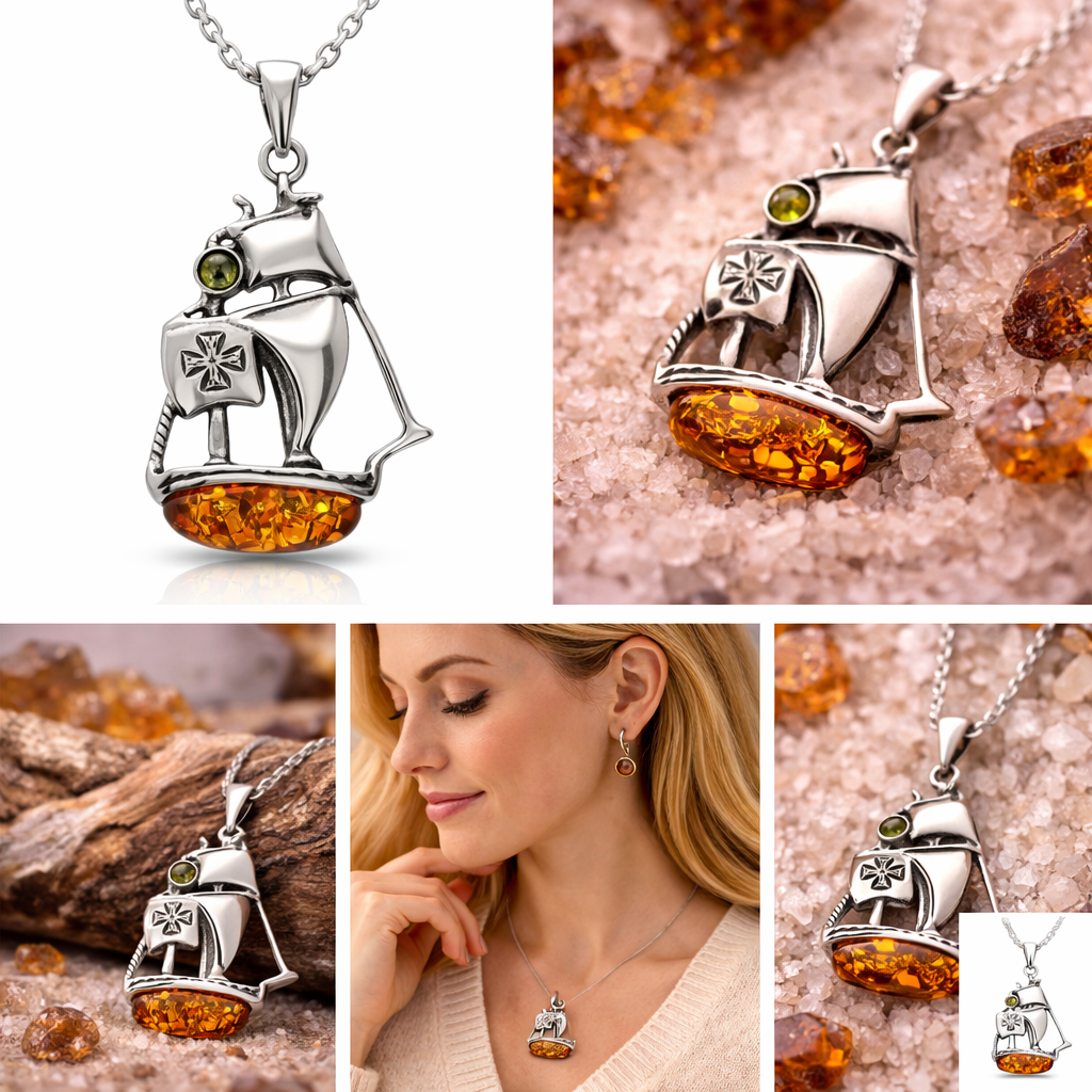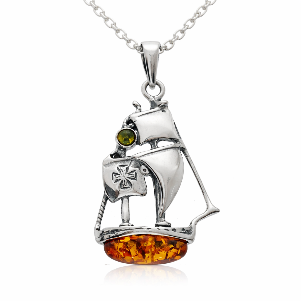 Sterlingsilber- und Bernstein-Schiff-Anhänger
