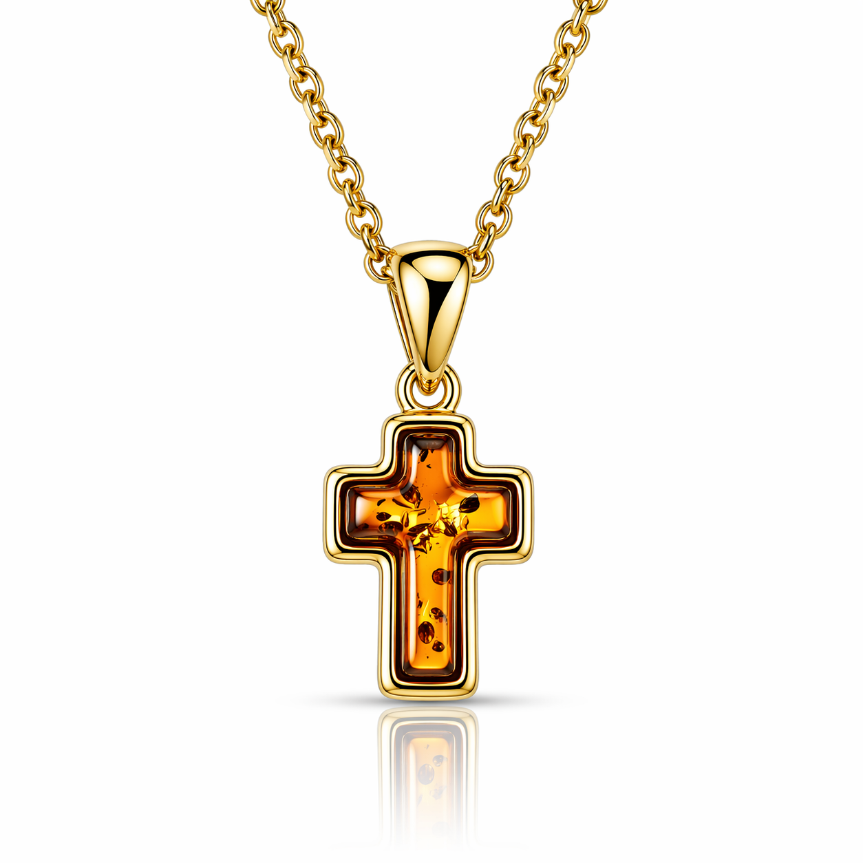 Kreuz-Anhänger aus Bernstein und vergoldetem Silber