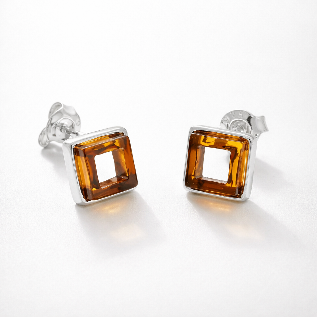 Kleine quadratische Bernstein- und Silberohrringe
