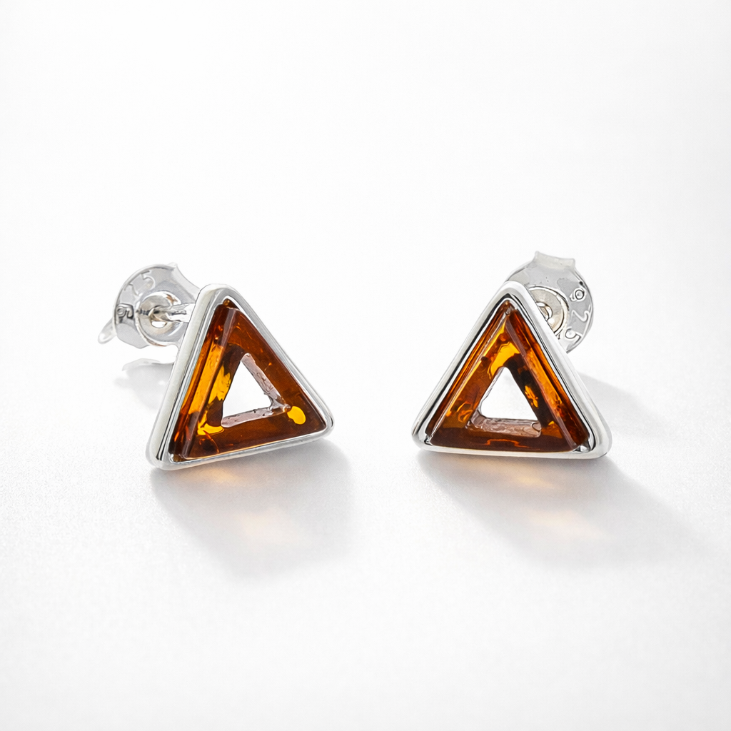 Kleine dreieckige Bernstein- und Silberohrringe
