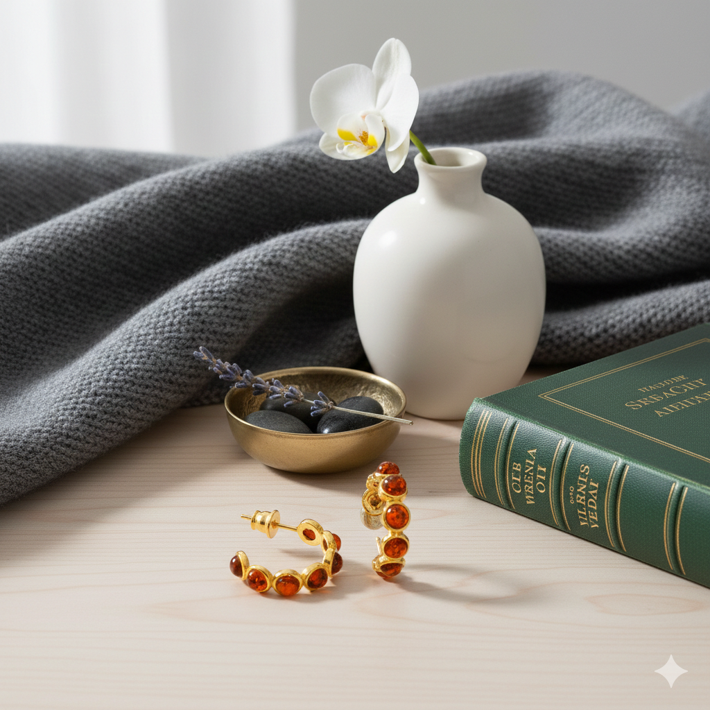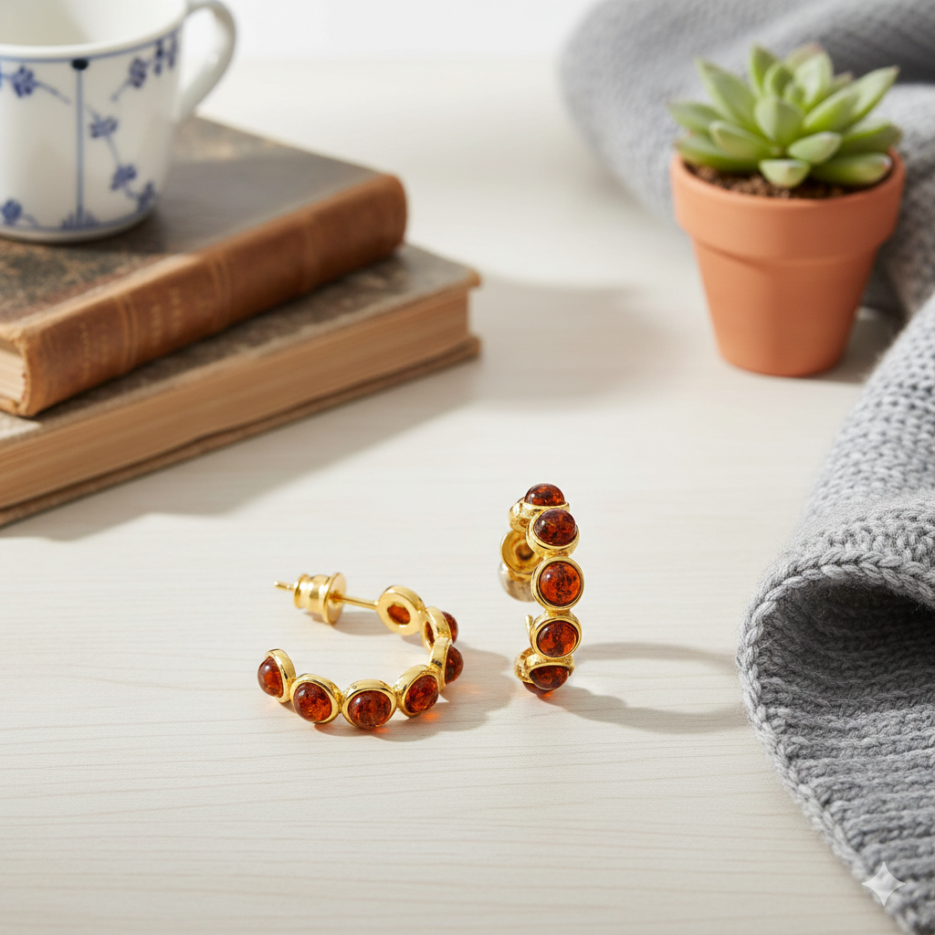 Vergoldete Creolen mit echtem Bernstein in brauner Farbe