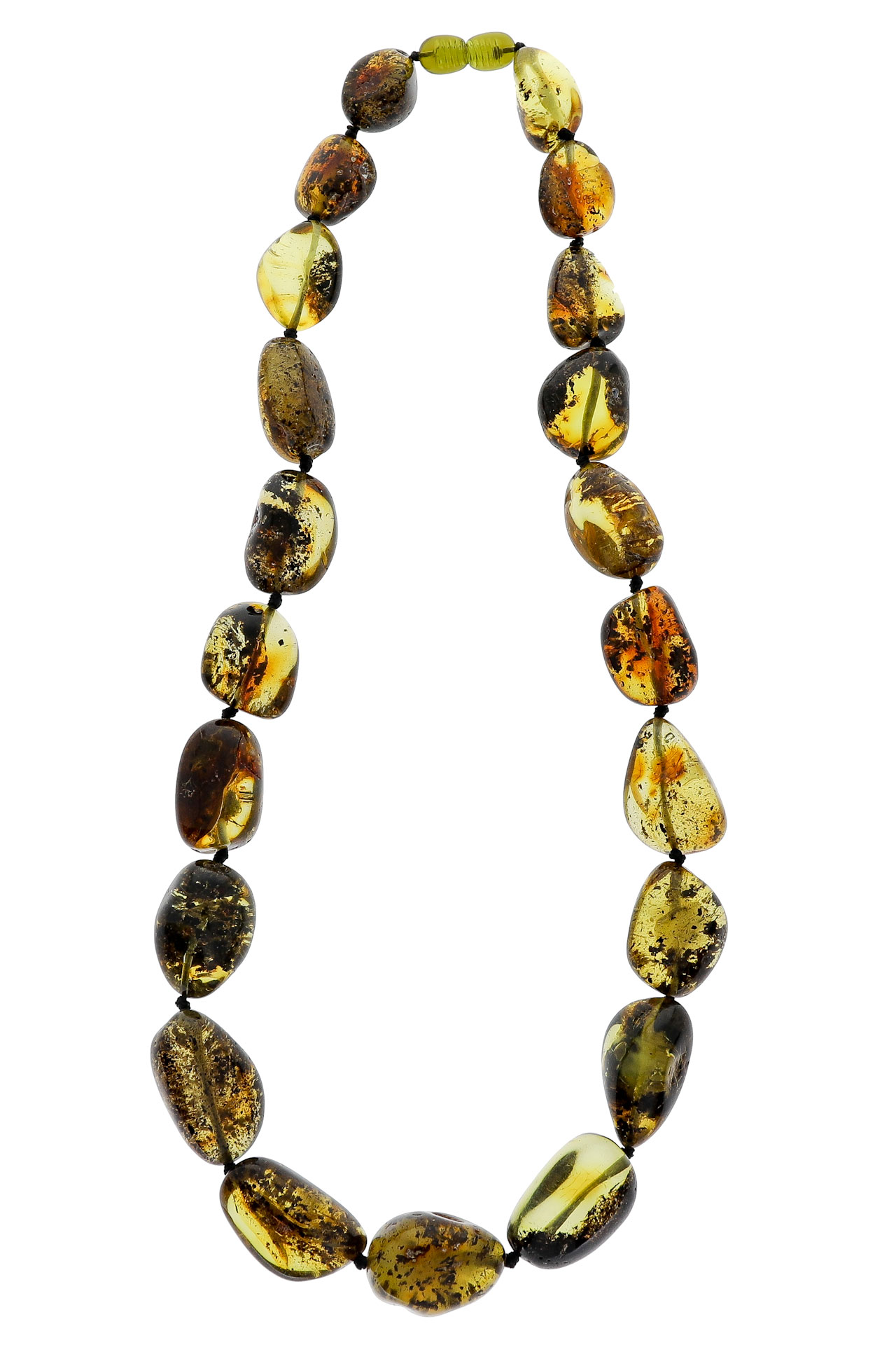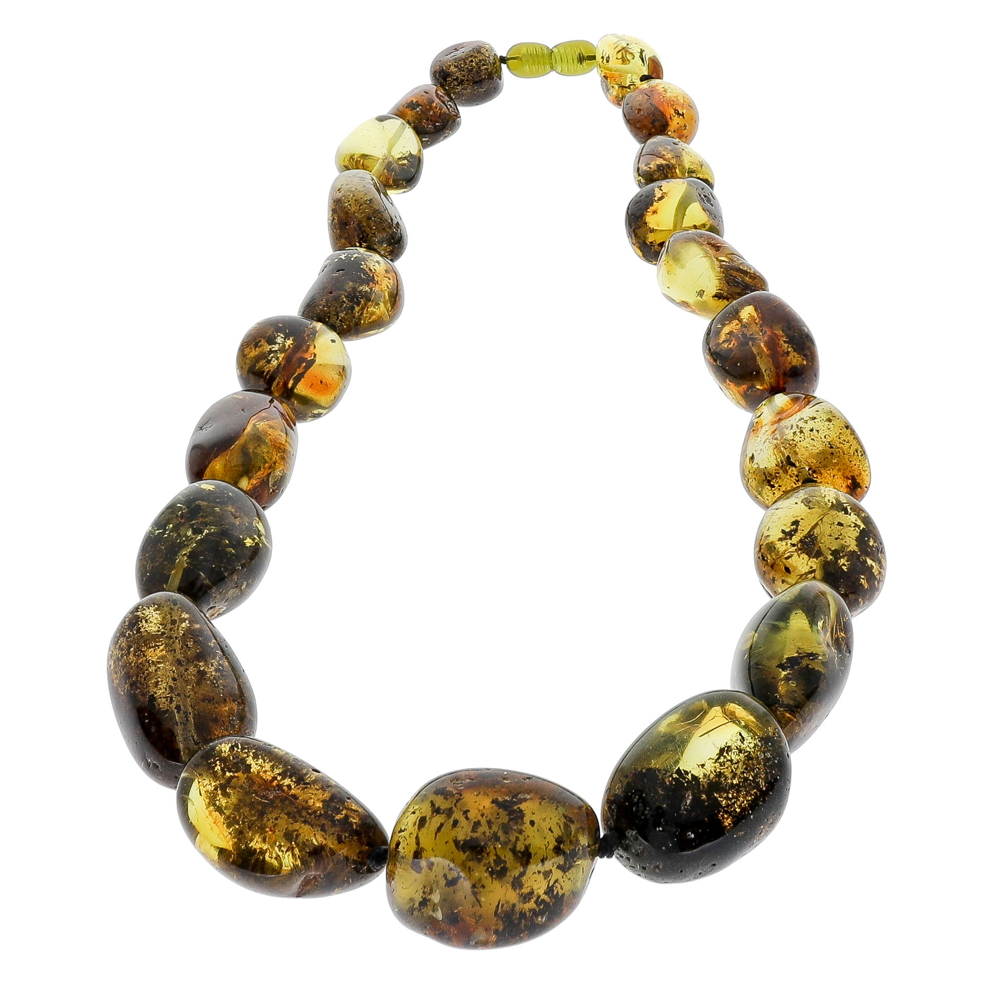 Die Kette ist handgefertigt aus den feinsten polierten Bernsteinstücken, jedes mit einer schönen Textur und einem Muster