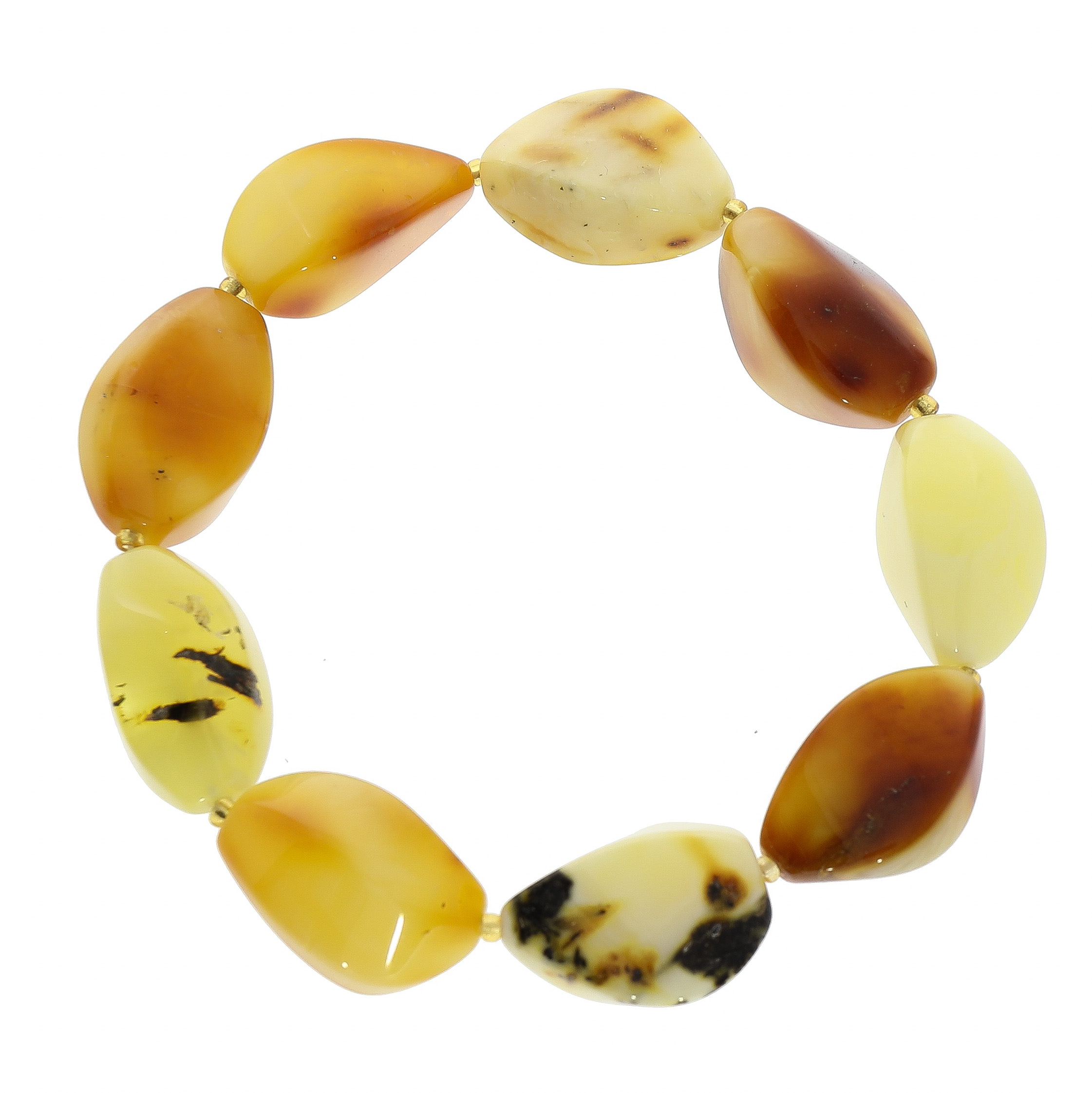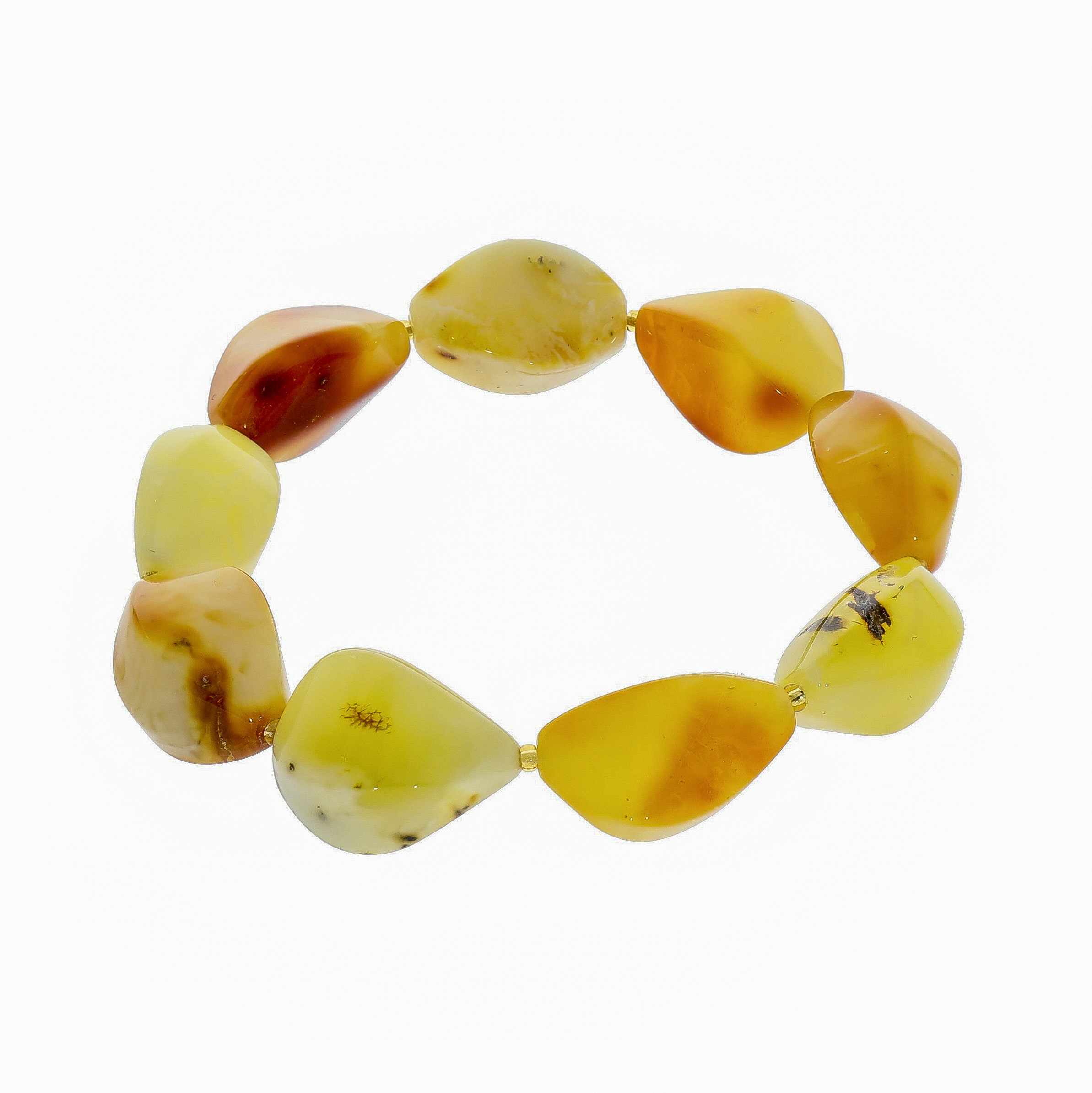 Das Armband enthält schöne, polierte und echte Bernsteinperlen. Im Inneren der Perlen kann man noch Sedimente aus der Jurazeit sehen.