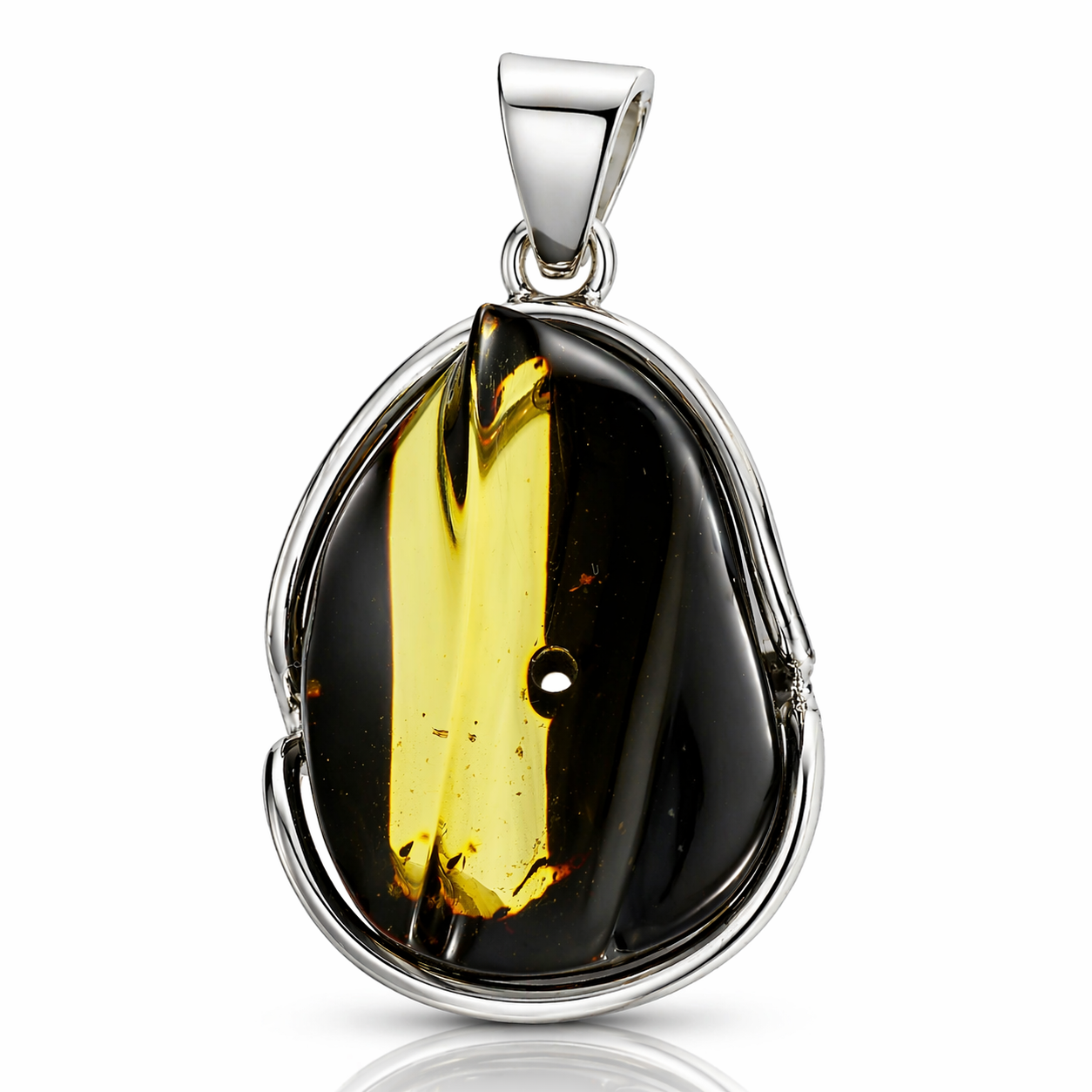 Das elegante Silberdesign unterstreicht die natürliche Leuchtkraft des Bernsteins und verleiht dem Anhänger eine zeitlose und luxuriöse Ausstrahlung.