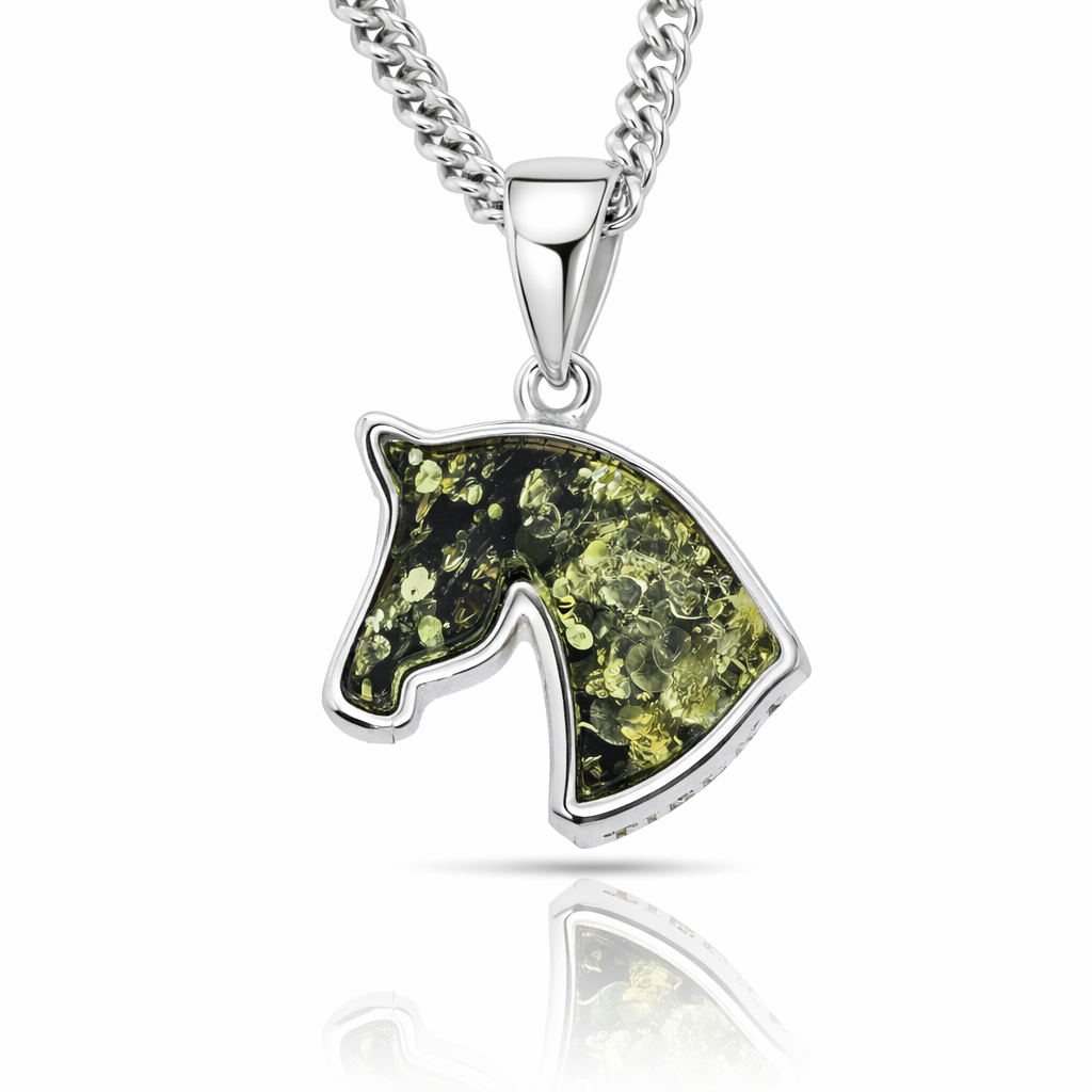 Kleiner Pferdeanhänger aus 925er Sterlingsilber und Bernstein