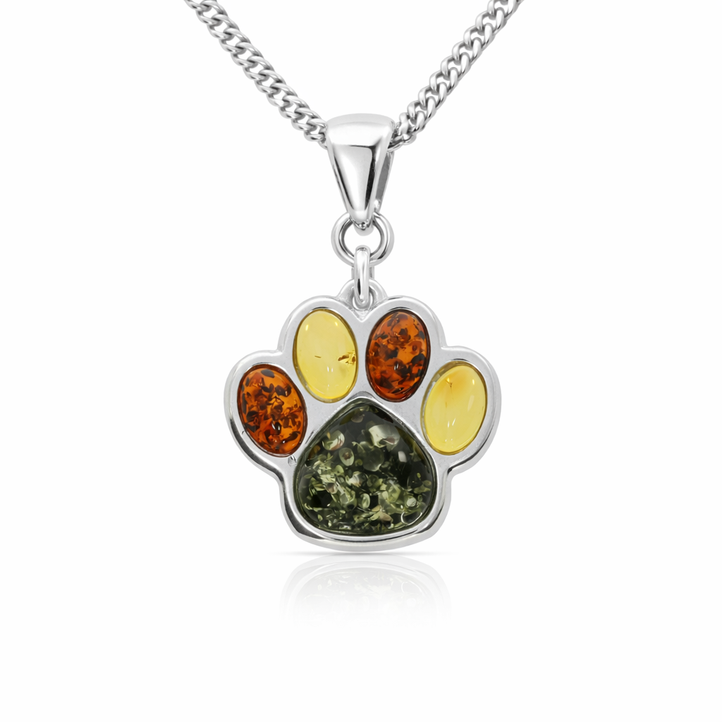 Hundepfoten-Anhänger aus 925er Sterlingsilber und Bernstein