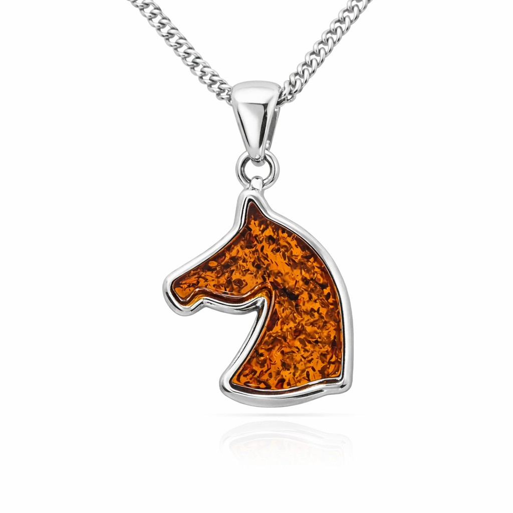 Kopi af Kleiner Pferdeanhänger aus 925er Sterlingsilber und Bernstein